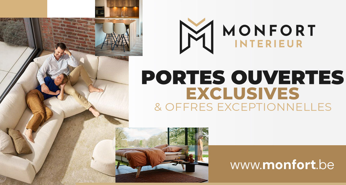 Toute l'équipe MONFORT INTERIEUR vous invite à ses Portes Ouvertes, le week-end des 30 novembre et 1er décembre de 9h à 18h. ...
